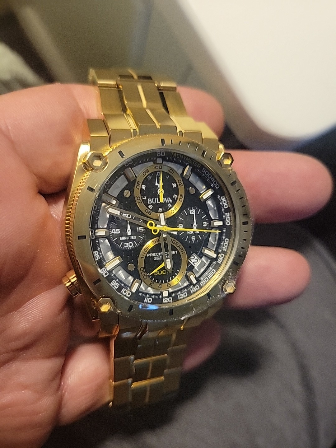 Reloj Bulova 97B218. Movimiento: características HPQ Precisionist: cronógrafo de 1/1000 segundos, calendario, HPQ Precisionist. Tamaño de la caja: 46,5 mm. Material de la banda: acero inoxidable. Resistencia al agua: 0300M