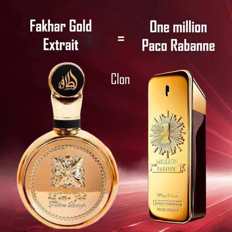 Fakhar Extrait de Lattafa Perfumes es una fragancia de la familia olfativa para Hombres. Esta fragrancia es nueva. Fakhar Extrait se lanzó en 2023. Las Notas de Salida son toronja (pomelo), cardamomo y pimienta rosa; las Notas de Corazón son nardos, notas solares y abrótano; las Notas de Fondo son ámbar, cachemira, ládano y cuero.