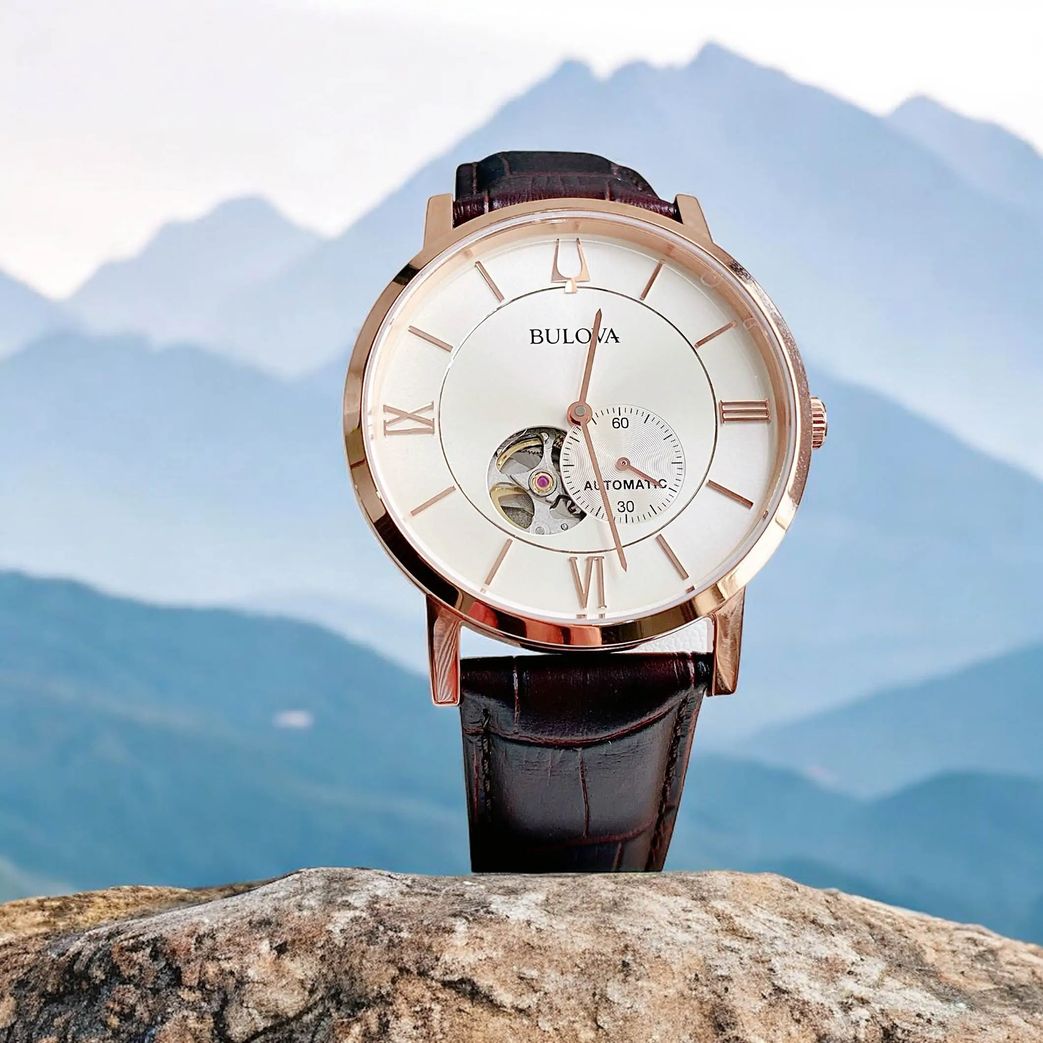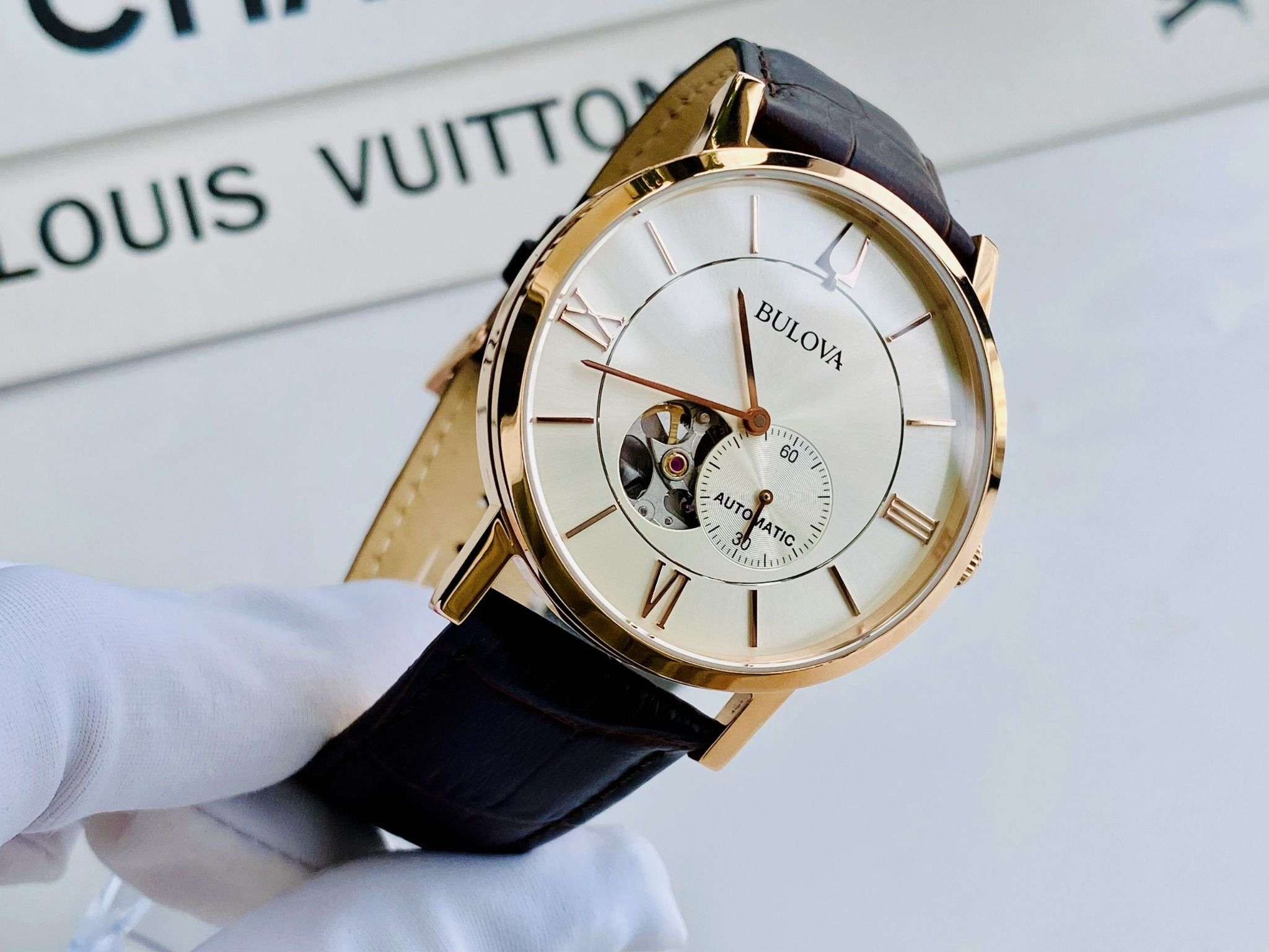 | Reloj Bulova 97A150. Movimiento: características automáticas: 3 manos, automático, sub segunda mano, función Hack. Tamaño de la caja: 42 mm. Material de la banda: cuero. Resistencia al agua: 30 m (3 ATM) | |