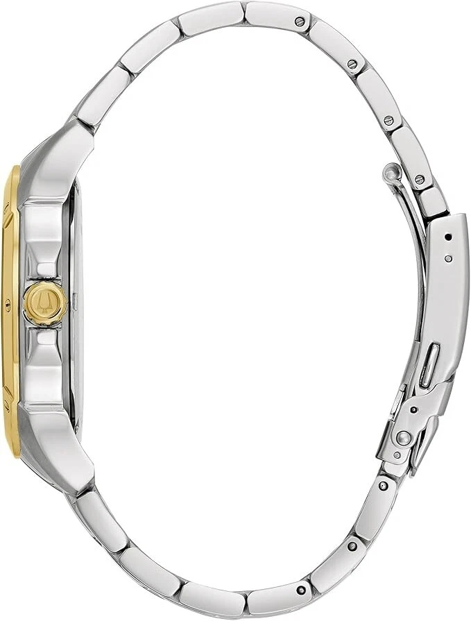 | Reloj automático Bulova para hombre con caja y pulsera de acero inoxidable de dos tonos, esfera esqueleto transparente negra, cristal mineral y es resistente al agua hasta 30 metros. | |