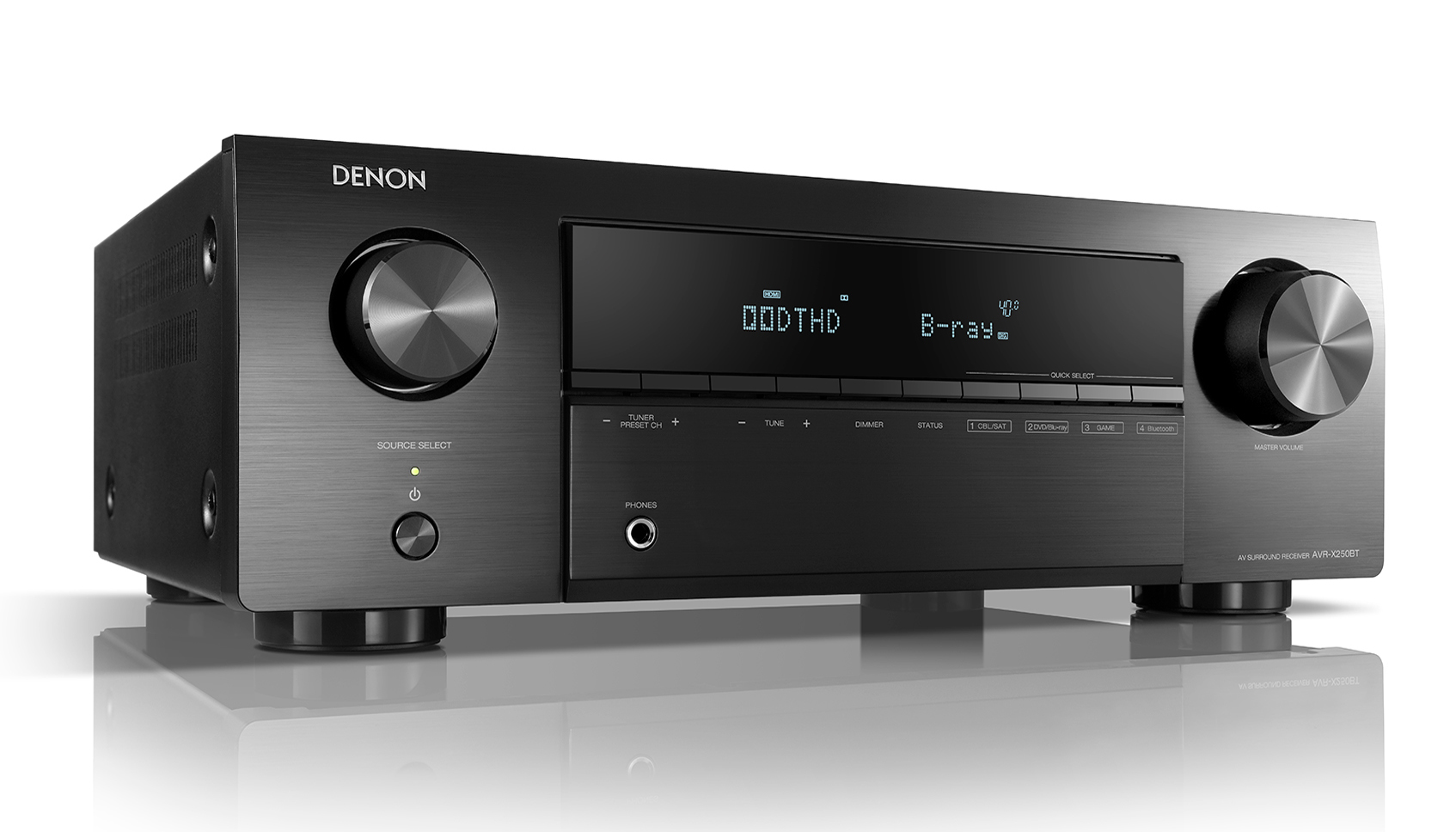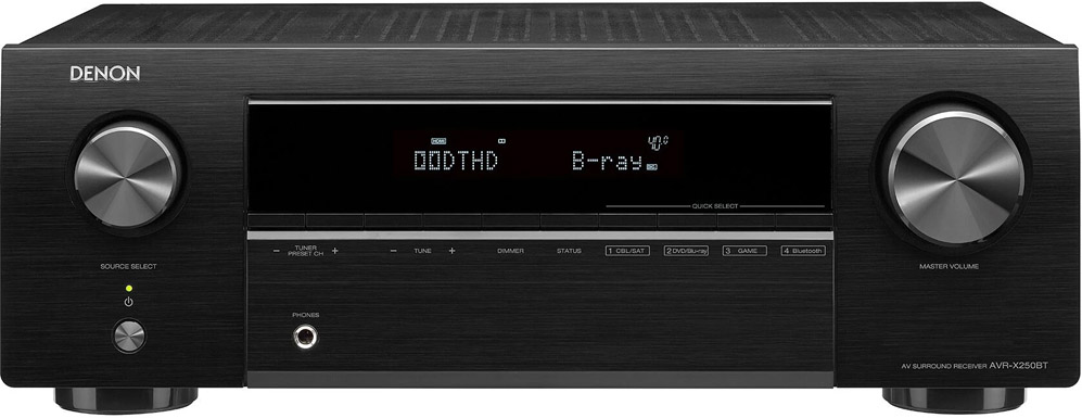 At 130W of power per channel, the 5.1 channel Denon AVR-X250BT AV receiver powers quality home theater that’s accessible to everyone. Watch your favorite shows with Full 4K Ultra HD and easily connect your media components and gaming systems to the five available HDMI inputs — or stream music with built-in Bluetooth.