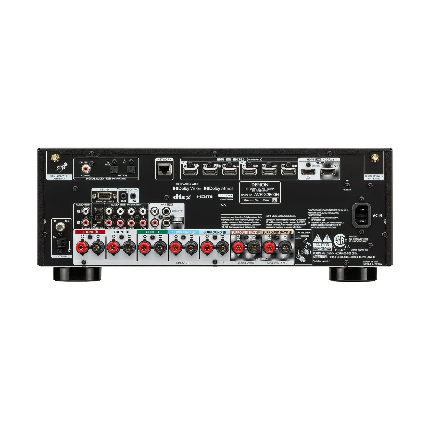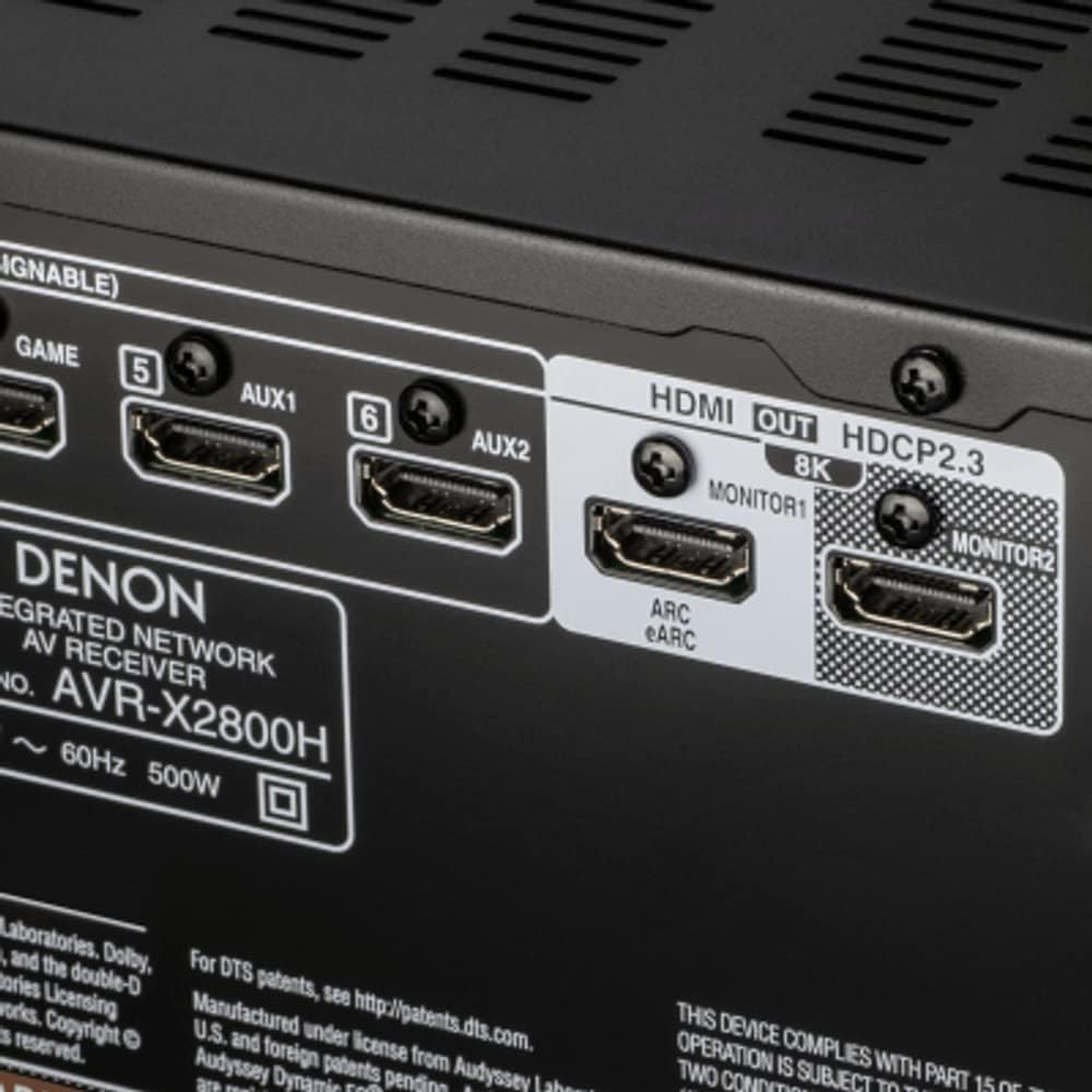 Denon Receptor AVR-X2800H de 7.2 Ch – 8K UHD Home Theater AVR (95W x 7), transmisión inalámbrica a través de HEOS integrado, Bluetooth y Wi-Fi, Dolby Atmos, DTS Neural: X y DTS:X Sonido envolvente